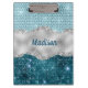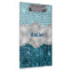 Aquamariner, gürtelgrüner Glitzer silber Monogramm Klemmbrett