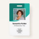 Personalisieren Sie diese vertikal aquamarinen türkisfarbenen Abzeichen mit einem Mitarbeiter-Foto, Firmenlogo, Bar-Code, Mitarbeiter-ID und Namen.