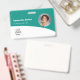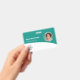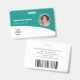Personalisieren Sie diese aquamarinen türkisfarbenen Abzeichen mit einem Mitarbeiter-Foto, Firmenlogo, Bar-Code, Mitarbeiter-ID und Namen.