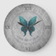 Fügen Sie Ihrer Zuhause eine elegante Touch mit einer Aquamarinen Schmetterlingsleuchte Personalisierte Acrylwand-Uhr hinzu. Das Uhrendesign zeichnet sich durch einen lebhaften Schmetterling aus, der mit einem Vintagen, grauen Damast-Muster aufwartet. Auch zusätzliche Geschenkartikel sind in diesem Design erhältlich.