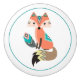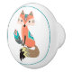 Ein bunter, niedlicher Fuchs trägt Stammes- Kleidung boho Art und hält eine Musterfeder auf diesem Keramikfachgriff. Das Bild, in der Orange und im Türkis, wird auf einen weißen Hintergrund gesetzt, und beringt mit einem dünnen aquamarinen Kreis.