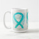 Die Tasse des Schutzengels zeigt das Gemälde eines aquamarinen Bewusstseinsbandenenengels. Aquamarine Sensibilisierungsangel Band Art Tassen oder Tasse können mit personalisierten Nachrichten angepasst werden, um große Tasse für Spendenaktionen, Sensibilisierungsbecher oder andere besondere Veranstaltungen oder Anlässe zu machen.