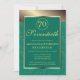 Luxuriöse aquamarine blau-goldene gemusterte Grenze geometrische Geburtstagseinladung mit modernem Drehbuch. Passen Sie die Details an der Vorderseite an.