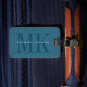 Auffallender aquamariner blauer unbedeutender Gepäckumbau mit einer drastischen Monogrammüberlagerung.