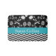 Dieses ist eine personalisierte aquamarine blaue Schwarz- u. weißeZickzack u. Blumenmusterbadmatte. Diese Badmatten sind für einen themenorientierten Dekor groß. Sie können, Ihren eigenen Text addierend, um ein neues Produkt herzustellen. Es ist einfach, Ihr eigenes Einzelteil zu personifizieren.