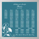 Eine Hochzeitssitzkarte ist eine elegante Art, Ihre Gäste an die Tische zu führen, anstatt die Platzkarten am Tisch zu benutzen. Sie können Ihre Sitzkarte auch als ein Muss Ihrer Hochzeit und der Leute, die mit Ihnen gefeiert haben, behalten haben. Dieses Hochzeitssitzdiagramm zeichnet sich durch ein weißes Blumendesign auf einem aquamarinen oder aquablauen Hintergrund mit weißem Text aus. Es ist in verschiedenen Größen mit einem optionalen Rahmen erhältlich. Wir bieten auch eine rechteckige Version dieser Hochzeitssitzkarte an, die viele Standard-Rahmengrößen anpasst.