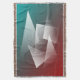 Weißgraue Dreiecke auf bordeauxfarbener, aquamariner Ölfarbe