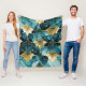 Japanisches Blumenmuster Aquamarin Gold Fleece Blanket GenerativeContent