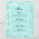 Aquamarines Damast Hochzeitsmenü. Die elegante Kollektion eignet sich hervorragend für eine Hochzeitsfeier, ein Brautparty, eine Babydusche oder eine Feier im Landhausstil. Die gesamte Auflistung ist anpassbar. Genießen Sie Ihre Feier, Beifall!