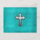Aquamarines Metallkreuz Postkarte