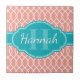 Stilvolle, trendige Rosa- und Ogee Gittermuster im Hintergrund, mit einem aquamarin blauen, hellen Label mit individualisierbarem Namen und Monogramm-Vorlage.