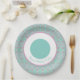 Aquamarines Rosa und Weißbuch GeburtstagsTeller Pappteller