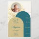 Mit diesem raffinierten und schön gestalteten Menü verkünden Sie die Taufe Ihrer Tochter. Mit einer harmonischen Mischung aus gedämpftem Gold und tiefem aquamarin strahlt dieses Design Eleganz und Anmut aus. Die zarte Blütenzeilenkunst ergänzt das gewölbte Layout perfekt um eine subtile Touch der Natur. Eine raffinierte Mischung aus modernen Serif- und Script-Schriftart verbessert die zeitlose Ästhetik. Das personalisierte Foto oben macht diese Einladung zu einem sinnvollen Sake. Ideal für Taufen, Taufen und religiöse Zeremonien, bietet dieses Menu den perfekten Set für ein herzliches Fest. B014