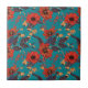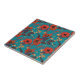 Aquamarines und rotes Blumenmuster Fliese