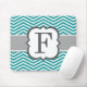 Aquamarines weißes Monogramm Letter F Zickzack Mousepad