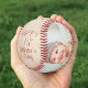 Wasserfarbe 1. Vatertag Script 2 Fotos Baseball. Niedliches Design für den neuen Vater. Trendy Skript Happy Vatertag, Nachricht mit Namen und Jahr ist auf rot-orange Aquarell Hintergrund. Fügen Sie Ihre 2 Lieblings-Fotos hinzu und machen Sie ein süßes Geschenk für einen neuen Vater zum Vatertag.