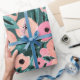 Rosa und aquamarines gemustertes, blumengeschmücktes Papier mit Pfirsichakzenten.