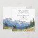 Diese moderne elegante Aquarell-Berg-Wildblumen-Hochzeit-Save-the-Date-Karte kann mit Ihren Informationen in moderner Typografie und einem speziellen Foto auf der Rückseite personalisiert werden. Entworfen von Thisisnotme
