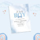 Laden Sie Ihre Lieben zu einem ruhigen Fest mit der "Watercolor Dusty Blue Baby Shower Invitation" ein. Dieses elegante Design besticht durch sanfte Wasserfarbenstriche in einem schönen staubigen Blau und schafft eine beruhigende und elegante Atmosphäre für Ihre Babydusche. Die dezente Farbpalette und der minimalistische Stil machen diese Einladung zu einem modernen und eleganten Event. Ob Sie eine entspannte Ansammlung oder eine stilvolle Affäre veranstalten, diese Einladung Set den Ton für ein unvergessliches und anmutiges Fest. Personalisieren Sie es, um Ihren einzigartigen Stil widerzuspiegeln und Ihren besonderen Tag unvergesslich zu machen.