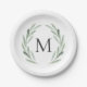 Aquarell-grünes Ölzweig-Kranz-Monogramm Pappteller