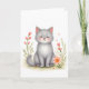 Aquarell-Kätzchen Hübsche Katze mit Blumen Blanko Karte
