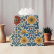Modernes, von der Amalfiküste, Positano und Portugal inspiriertes Sommerverpackungspapier. Das Azulejo ist ein typisch portugiesisches geometrisches Aquarellmuster mit botanisch blauen, gelben und roten Blumen für eine boho Touch.