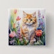 Aquarell Orange Tabby Kitty Cat Im Blumengarten Button