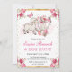 Elegante Aquarellfarben Rosa Blume in der Wasserdose und Niedliches Lamm mit Schmetterlingen Design mit Goldfolienrahmen und Glitzer Konfetti