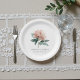 Wunderschöne roséfarbene Pfingstrosen-Hochzeitspapier-Teller mit eleganten Aquarell-Pfingstrosen und botanischem Grün in femininen minimalistischen und boho-vintage Stilen.