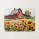 Puzzle Wasserfarbe Rustikaler roter Stall mit Sonnenblumen farbenfrohe Kunstillustrierung Spaß/Einzigartig individuell einstellbar