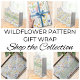 Dieses Seidenpapier hat ein Aquarell-Wildblumenmuster in Grün-, Gelb-, Orange- und Blautönen.