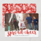 Diese Spaßfeiertags-Fotokarte kennzeichnet rote beschrifteten Schriftart des Watercolor Hand auf einem klaren weißen Hintergrund. Die Rückseite schließt eine koordinierende rote Aquarellbeschaffenheit mit Feiertagsbeeren und -niederlassungen ein.