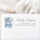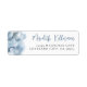 Ein einfaches und elegantes Absenderetikett mit einer weichen, traumhaften Atmosphäre. Auf der linken Seite fügt ein zartes Wasserfarben-Wolkenmotiv eine leichte und luftige Note hinzu. Rechts werden Name und Adresse in einer sauberen Mischung aus Schreib- und Serifen-Schriftarten in Blau und Grau dargestellt, wodurch ein gepflegtes und leicht lesbares Layout entsteht.