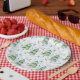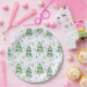 Watercolor Winterpapierteller mit Weihnachtsbäumen.