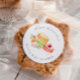 Aquarellfarben-Macaroons mit runder Kirsche Aufkleber. Verfügbare Matching-Elemente.