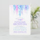 Loose Rebsorten Blume botanische Aquarellmalerei Kunst Vertikale Abend Hochzeitsempfang Einladungen. Schöne Blumenkunst lockere Aquarellkunst Design ideal für einen Abend Hochzeitsfeier in hübschen Blautönen, lila und pink. © Original watercolor art and design by Sarah Trett www.sarahtrett.com for www.mylittleedenweddings.com