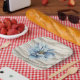 Aquarellblaue Blume auf Elfenbeinküste Abstrakt Pappteller