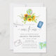 Trendy handgemalte Aquarell Sonnenblumen Reise thematisch Brautdusche Einladung mit schlauer grüner Wasserfarbe WaschHintergrund.