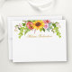 Die elegante Watercolor Sonnenblume Personalisierte Note Card beinhaltet die goldgelbe Sonnenblume, rosa Rosen und botanische Vegetation. Goldenes Drehbuch.