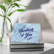 Eine herzliche "Thinking of You"-Beileid-Karte mit sanft blauen Aquarellbildern und einer sanften Insiderbotschaft, die Ihnen den Komfort und die Helligkeit des Tages verleiht. Diese einfache und elegante Karte ist ideal, um einem Freund oder Liebsten in einer schwierigen Zeit warme Gedanken zu schicken.