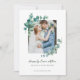 Elégant faire-part de mariage d'eucalyptus aquarelle avec une photo personnalisée.