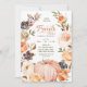 Cette invitation Friendsgiving a une jolie bordure citrouille fleurie aquarelle. Les couleurs utilisées comprennent le vert d'olive, la prune, la rouille et l'orange. En haut est stylisé du texte en rouille qui dit "Merci de donner". Les détails de l'invitation sont en vert olive et sont personnalisables. Tout est affiché sur un arrière - plan blanc immaculé. L'arrière de l'invitation a un arrière - plan de peinture craquelé avec un bouquet floral qui coordonne avec les couleurs rustiques sur le devant. Un excellent moyen pour les invitations de dîner à Thanksgiving. Cette invitation est coordonnée avec la collection Donner Merci Floral Citrouille.