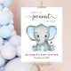 Un joli panneau de bienvenue en acrylique blanc avec "A Sweet Little Peanut Is On His Way" écrit dans un mélange de typographie gris doux et un script élégant avec des swashes et une aquarelle bleu pastel d'un bébé éléphant. Personnalisez le nom et la date de baby shower de la mère en simple typographie grise.