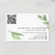 Modèle de carte de visite botanique feuille d'aquarelle avec code QR, vigne dessinée à la main et accent floral. Ce design carte de visite est facile à customiser en ajoutant votre propre logo. Créez et ajoutez votre propre code QR unique pour diriger facilement les clients vers votre site Web.