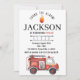 Aquarelle minimaliste invitation camion feu pour garçon d'anniversaire. Modifiez le texte important immédiatement sur zazzle. Peut télécharger instantanément pour utiliser l'image pour partager numériquement ou imprimer plus rapidement. Pas besoin d'attendre que le concepteur ajoute du texte. Vous pouvez également modifier les polices et les couleurs du texte.
