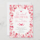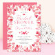 Invitation à la douche nuptiale avec cadre de coeur feuillu rose et rouge sur un arrière - plan blanc Retournez notre doux invitation à voir un dos de coordination.