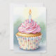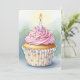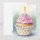 invitations d'anniversaire à l'aquarelle avec un délicat cupcake d'anniversaire rose avec bougie éclairée