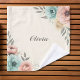 Ce linge de toilette personnalisé présente des fleurs délicates et croquantes, avec des textures douces d'aquarelle rose pâle, vert menthe et jaune pâle.