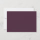 Cette version du Boho RSVP rustique présente des roses violets d'aubergine d'aquarelle lustres. Plumes, feuilles, tiges, baies, tout est dans les tons rose et vert. Le dos de la carte est un violet d'aubergine solide. Ce serait beau pour un mariage automne / automne. Le modèle est facile à personnaliser - il y a des éléments de script de calligraphie manuscrit en violet aubergine et un mélange de police moderne.