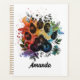 Aquarelle Empreinte de patte dans un style Boho abstrait avec des éclaboussures de peinture de couleur ornée de couleurs feuilles, jaune orangé turquoise et violet, c'est un très bon design pour les propriétaires de chats, les propriétaires de chiens et les amoureux des animaux en général. Personnalisez ce carnet avec votre nom ! Vous pouvez modifier la police ainsi que la taille et la couleur de la police.